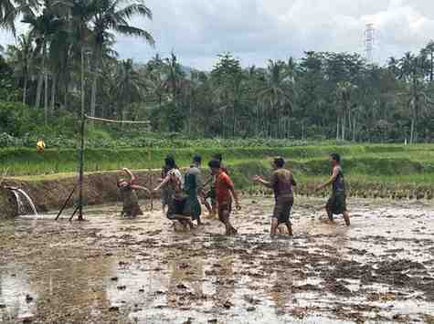 Salah satu kegiatan yang paling menyita perhatian adalah sepak bola basah di tengah sawah. Berbeda dari pertandingan sepak bola pada umumnya, para peserta diwajibkan mengenakan daster, menciptakan suasana yang tidak hanya kompetitif tetapi juga penuh hiburan.